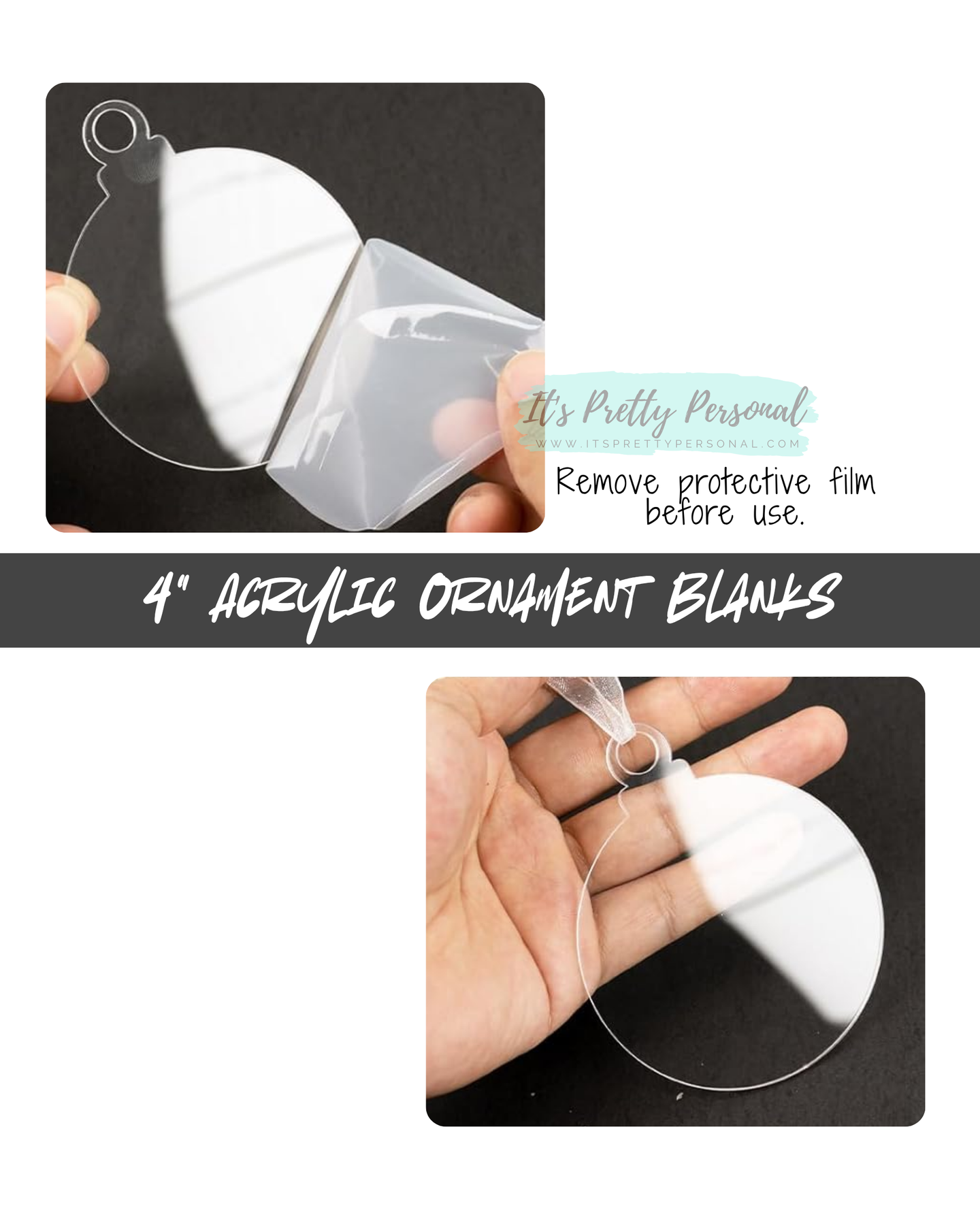 Each acrylic ornament blank is protected by a double-sided film, ensuring they arrive in perfect, scratch-free condition. Simply peel off the protective layer to reveal a glossy, crystal-clear surface.